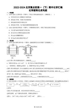 文件名称:2022-2024北京重点校高一(下)期中化学汇编:化学能转化成电能-答案