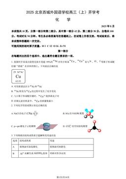 文件名称:2025北京西城外国语学校高三(上)开学考化学(教师版)-答案