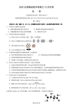 文件名称:2025北京陈经纶中学高三12月月考化学(教师版)-答案