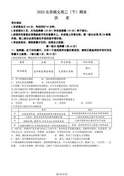 文件名称:2023北京顺义高二(下)期末历史(教师版)-答案