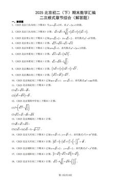 文件名称:2025北京初二(下)期末数学汇编:二次根式章节综合(解答题)-答案