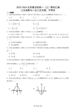 文件名称:2022-2024北京重点校高一(上)期末汇编:二次函数与一元二次方程、不等式-答案