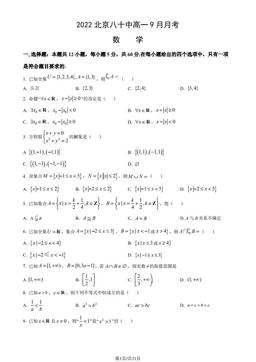 文件名称:2022北京八十中高一9月月考数学(教师版)-答案