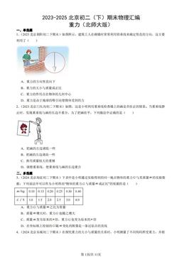 文件名称:2023-2025北京初二(下)期末物理汇编:重力(北师大版)-答案
