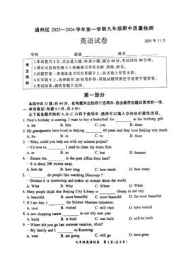 文件名称:2025北京通州初三(上)期中英语(教师版)-答案