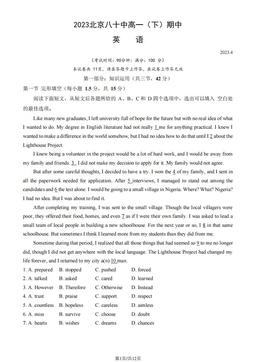文件名称:2023北京八十中高一(下)期中英语(教师版)-答案