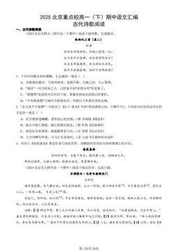 文件名称:2025北京重点校高一(下)期中语文汇编:古代诗歌阅读-答案
